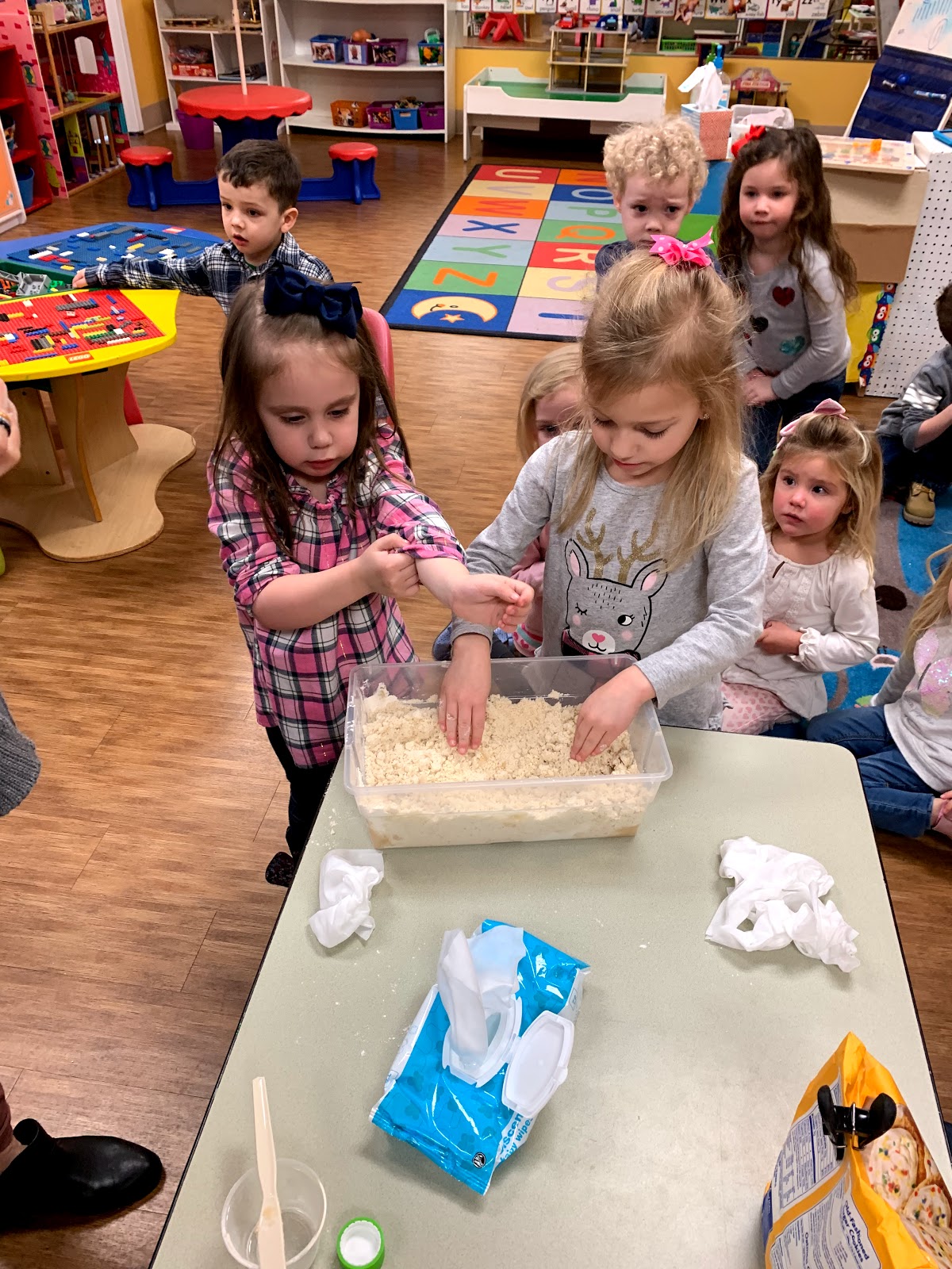 Time for moon dough. You are welcome in advance for this sensory dough...that can be quite messy! But it sure leaves your hands soft and smelling of a new baby... :) |